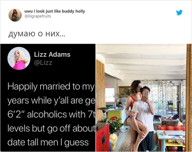 Пользовательница Твиттера под ником lilgrapefruits поделилась историей Лизз Адамс — эта девушка похвасталась отношениями со своим парнем, который ниже нее.