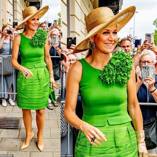 С «салатом» на груди: королева Нидерландов Максима удивила необычным образом