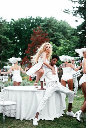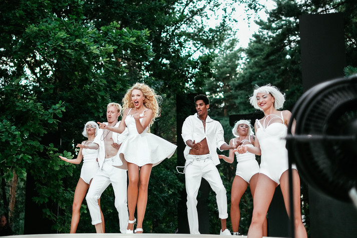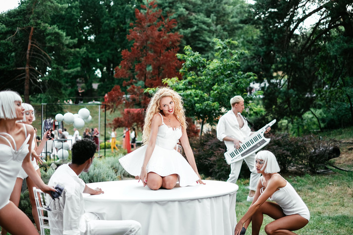Вчера в Ботаническом саду им. Гришко в рамках большого праздничного концерта, посвященного 15-летию «Светской жизни с Катериной Осадчей» Оля Полякова исполнила живую версию будущего сингла «Белый танец», которую совсем скоро представит своим слушателям в официальном формате. Режиссером одного из самых технически-сложных номеров выступил Герман Ненов. Сложность постановки заключалась не столько в исполнении композиции на абсолютно разных локациях, разделенных друг от друга приличной дистанцией, сколько количеством трюков, выполняемых Олей на хрупких конструкциях, а также большой технической группой, которая размещалась за кадром мизансцен.