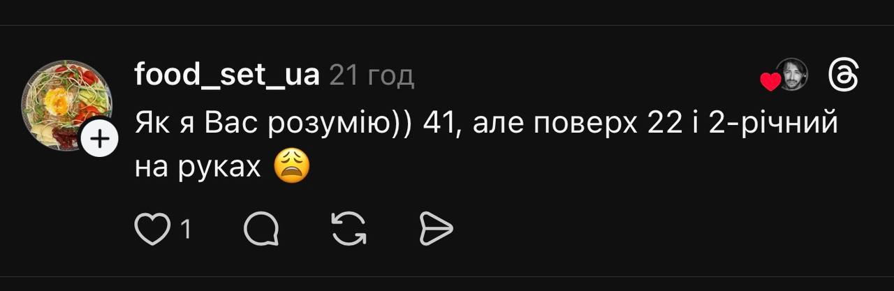 - «Як я Вас розумію)) 41, але поверх 22 і 2-річний на руках».
