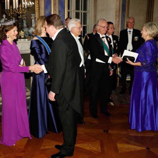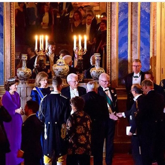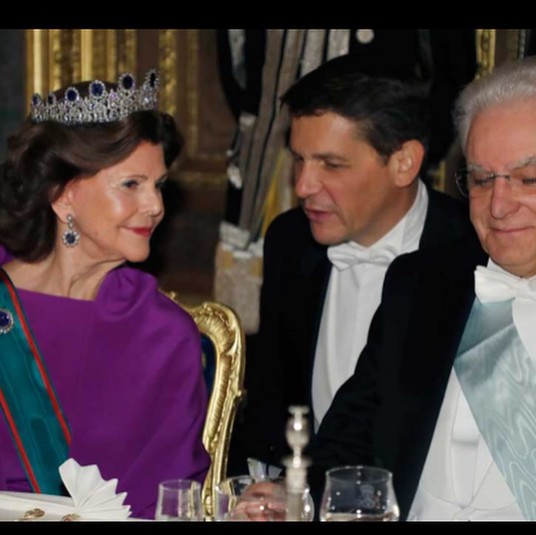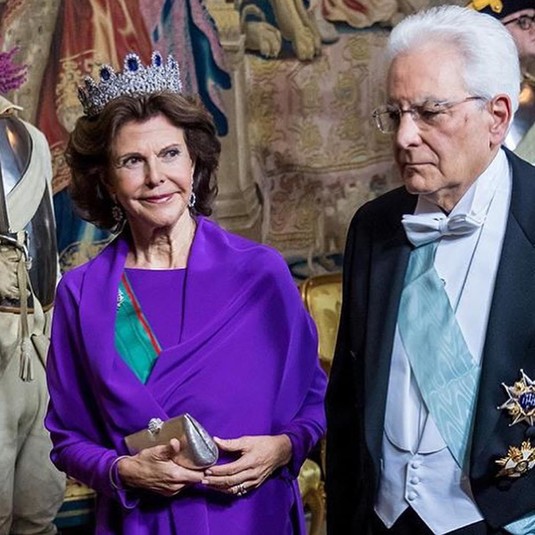 На этой неделе в Стокгольм прибыл с официальным визитом президент Италии Серджо Маттарелла. По традиции в честь гостя был устроен ужин во дворце, на котором присутствовали король Швеции Карл XVI Густав, королева Сильвия, кронпринцесса Виктория с принцем Даниэлем, принц Карл Филипп с принцессой Софией и почетные гости.