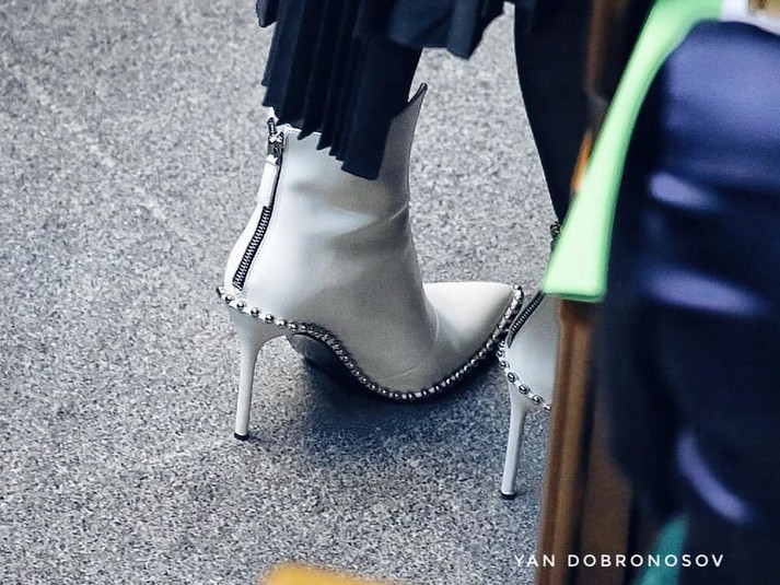«В Верховную Раду всегда одевается нестандартно. Сегодня пришла в парламент в ботильонах 'Eri' от Alexander Wang. Такие в белом цвете можно было приобрести за 777 евро. Это уже со скидкой. Изначальная цена (еще есть в наличии в черном) - 963 евро. По курсу НБУ, это 25220 грн при средней зарплате нардепа 20-23 тыс.грн. И не надо завидовать!», - написала журналистка.
