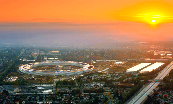 Apple Park в Купертино — новая штаб-квартира компании Apple. Согласно проекту в новом здании площадью 260 тысяч квадратных метров будут работать более 12 тысяч сотрудников компании. Помимо офисов на территории кампуса также расположатся фитнес-центр, концертный зал, научно-исследовательская лаборатория, кафе, комнаты отдыха и другие инфраструктурные объекты.