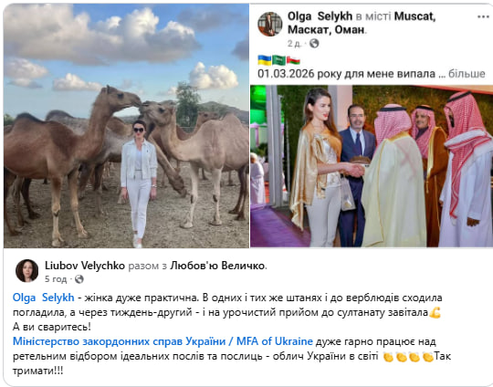 Нагадаємо, новим надзвичайним і повноважним послом України в Султанаті Оман стала Ольга Селих. Відповідний указ президента України Володимира Зеленського з'явився на сайті глави держави у понеділок, 21 липня 2025 року. Користувачі соцмереж звернули увагу на відсутність дипломатичного досвіду в Ольги Селих, натомість нова пані посол «пообіцяла стати тією силою, яка працює на перемогу України».