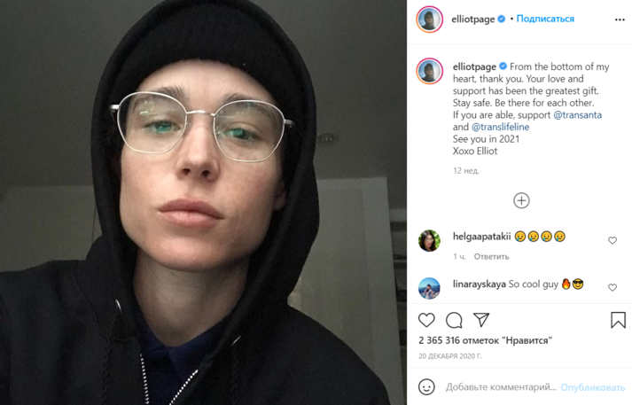 Канадский актер Эллиот Пейдж, совершивший каминг-аут как трансгендерный мужчина, удалил грудь. Об этом он сообщил изданию Time.