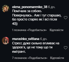 У коментарях під цим дописом українці теж поділилися своїм досвідом еміграції та проживання за кордоном. За словами однієї користувачки, вона теж помітила, що за кордоном швидше старіє.