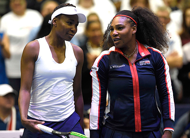 Серена Уильямс выступила вместе с сестрой Винус Уильямс против спортсменок из Нидерландов в матче 1/4 финала Мировой группы Кубка Федерации в Эшвилле, Северная Каролина.