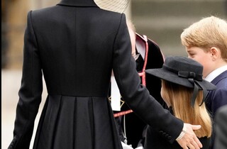 Принцеса Уельська постала в гарній чорній сукні, яку доповнила капелюхом з жалобною вуаллю. Витончений образ виглядав ефектно завдяки перлинним сережкам – улюбленим каменем аристократок, яким прийнято виражати скорботу. Образ доповнив перлинний чокер із діамантами, який був на Кейт під час похорону чоловіка королеви. Гарний жест, який символізує не лише прощання Кейт Міддлтон з королевою, а й побажання возз'єднання на небесах із дорогим чоловіком.