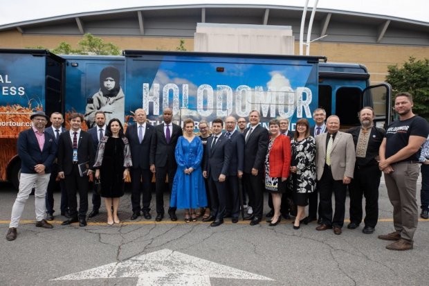 Президентская чета приняла участие в запланированной экскурсии, организованной в рамках проекта Holodomor National Awareness Tour. Владимир Зеленский почтил память всех погибших украинцев в 1932 -1933 годах и возложил к мемориалу символические композиции из колосков.