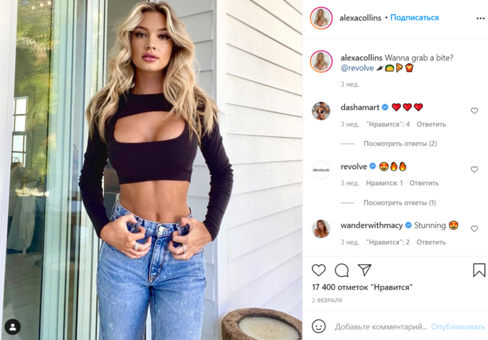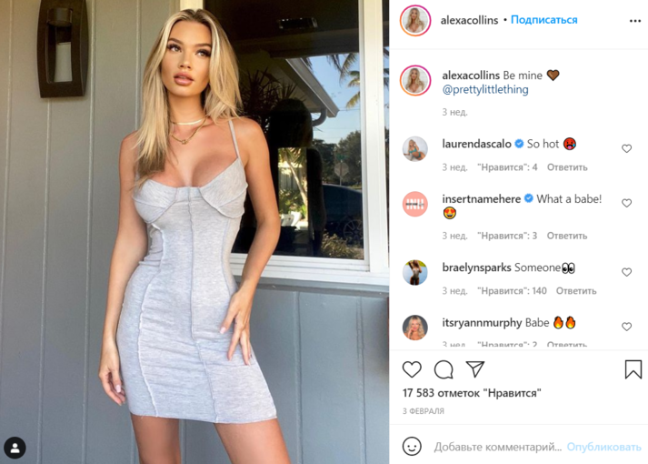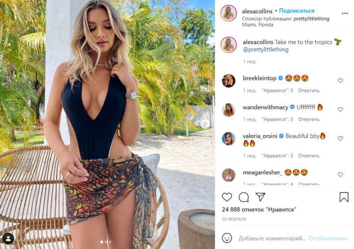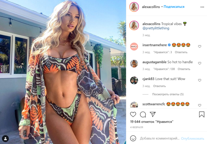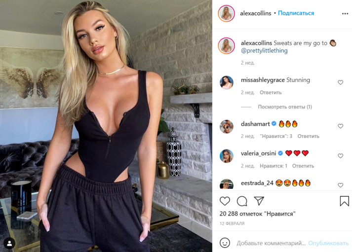 «На тот момент я уже работала со многими крупными брендами, поэтому у меня было достаточно возможностей для самореализации. Вам нужно всего 50 тыс. подписчиков, чтобы начать зарабатывать в Инстаграме», - Алекса Коллинз.