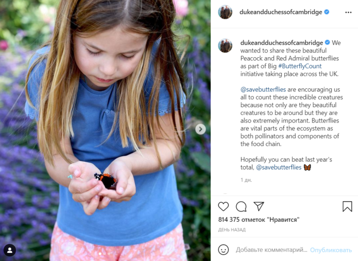 Поклонники британской королевской семьи не поскупились на восторги в комментариях. «Шарлотта и бабочка. Как мило!», «Очаровательная Шарлотта», «Чудо-девочка, такая милая, искренняя и добрая», — отметили фолловеры.