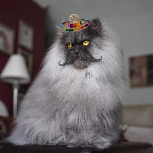 Знакомьтесь, это Юнона — шестилетняя гималайская кошка, которая прославилась в интернете благодаря своей густой двухцветной шерсти и исключительно суровому выражению морды. Хозяйка животного регулярно создает для Юноны причудливые прически и примеряет на питомицу шляпки, которые кошечке очень идут.