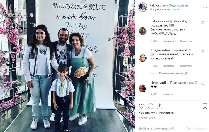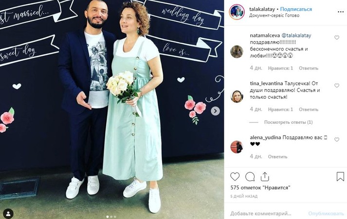 «Очень камерно, только с самыми близкими и эта та свадьба о которой я мечтала», - так прокомментировала церемонию Тала Калатай на своей странице в соцсети.