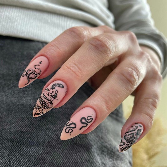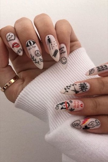 В 2022 году тату для ногтей могут быть в виде геометрических фигур, букв или рисунков. Зачастую их выполняют черной краской на светлом ногте, однако яркие рисунки также встречаются. При этом необязательно делать тату на всех ногтях, можно украсить необычным дизайном лишь один ноготь.