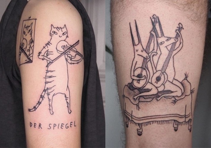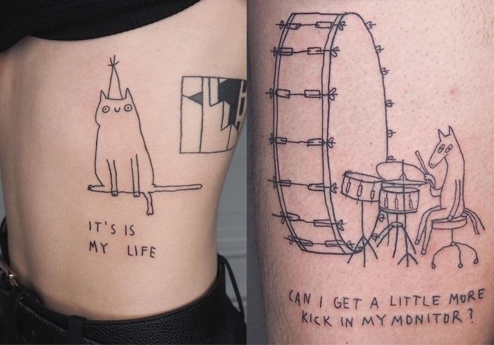 Однако не дайте им себя обмануть, Бонжур опытная художница, которая имеет в своем портфолио и более привычные эскизы тату, но они пользуются меньшей популярностью, ведь куда интереснее набить корявую, но очаровательную почеркушку