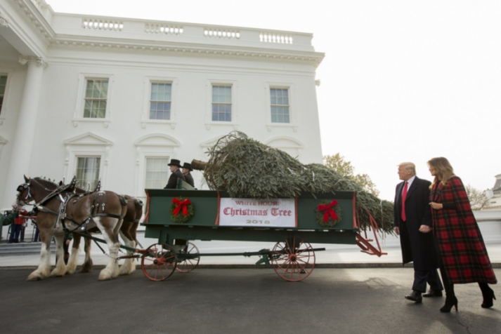 19 ноября, президент Дональд Трамп и первая леди Мелания Трамп приняли участие в презентации официальной рождественской елки Белого дома