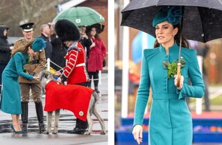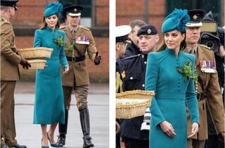 Кейт відвідує кожен парад на честь Дня Святого Патрика з 2012 року, відколи вона стала дружиною принца Вільяма. Герцогиня майже завжди одягалася з цієї нагоди в зелене, віддаючи шану Ірландії. Однак цього року принцеса з'явилася в бірюзовому пальті Catherine Walker з легким натяком на стиль мілітарі в крої. Чому саме такий колір вбрання? Пальто ідеально поєднувалося з пір'ям, яке прикрасило шапки військовослужбовців. Більше того, гудзики на одязі Кейт були розташовані, як на уніформі гвардійців. Проте елегантне вбрання дружини принца Вільяма контрастувало з тим, як вона трималася.