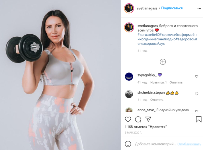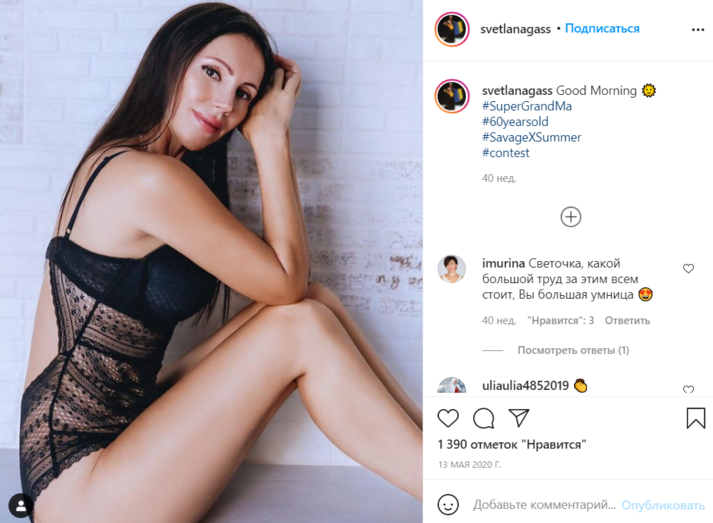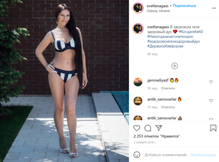 «Красотка! Восхищаюсь Вами!», «Невероятная женщина», «Светлана, как же Вы радуете глаза! Глядя на Вас, испытываешь эстетическое удовольствие, а вместе с тем осознаешь, что молодость есть молодость духа и она может быть бесконечной», – пишут восторженные поклонники.
