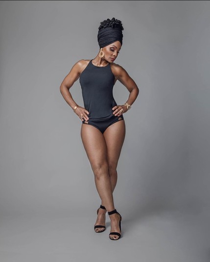 На опубликованных фото героиня материала одета в черный купальный костюм и босоножки на каблуке. Ее образ дополнили повязка на голове, крупные золотые серьги, браслеты и кольца.