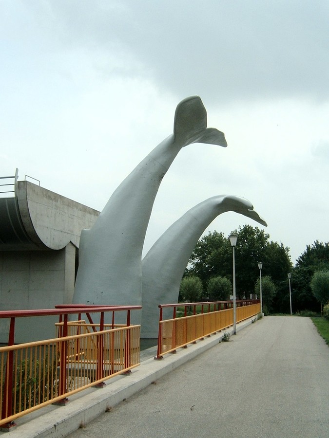 Поезд метро высадил последних пассажиров на конечной наземной станции и отправился в депо. Однако состав не сумел остановиться и, проломив ограждение на рельсах, поехал в сторону окончания железнодорожных путей. Ситуация могла закончиться для машиниста плачевно, если бы не арт-объект. Первый вагон поезда слетел с путей, но от падения его спасла скульптура в виде хвоста кита.
