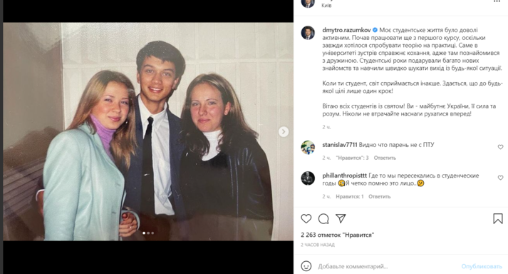 Экс-спикер Верховной Рады Украины Дмитрий Разумков в своем Инстаграме опубликовал фото, на которых он запечатлен в студенческие годы. Политик посвятил публикацию Дню студента.
