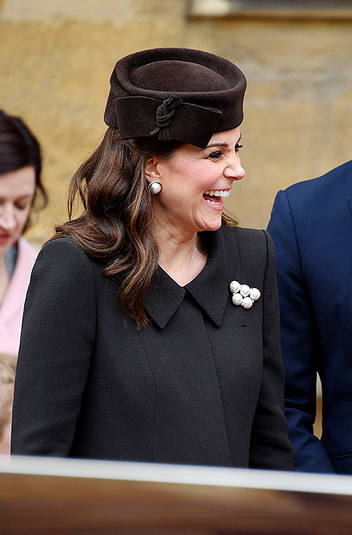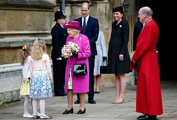 Сегодня Кейт в компании королевы Елизаветы II, принца Уильяма, принцессы Анны, принцесс Евгении и Беатрис, Зары Филиппс, которая также готовится к рождению ребенка, и других членов королевской семьи побывала на праздничной службе, приуроченной к Пасхе.