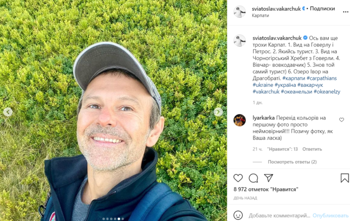 Вакарчук очаровал сеть яркими фото с отдыха в Карпатах