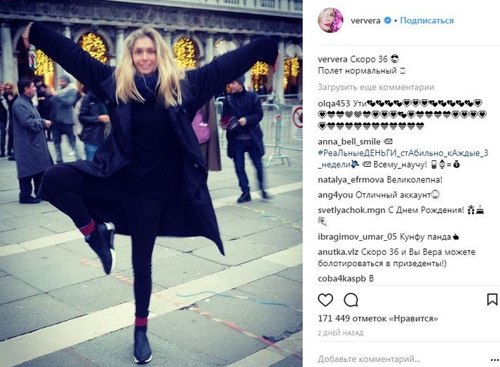 «Вот так сегодня выглядело мое утро! Небо над Венецией было наполнено любовью! Любовью моих близких и друзей. Хотя, ни одна фотография не способна передать моих эмоций. Но самое главное, что я хочу сказать сегодня: Спасибо! Спасибо всем вам за то, что вы у меня есть! Спасибо каждому, кто нашел время и желание поздравить меня! Спасибо за вашу любовь! Она наполняет и окрыляет меня!», - написала артистка на своей странице в Instagram.