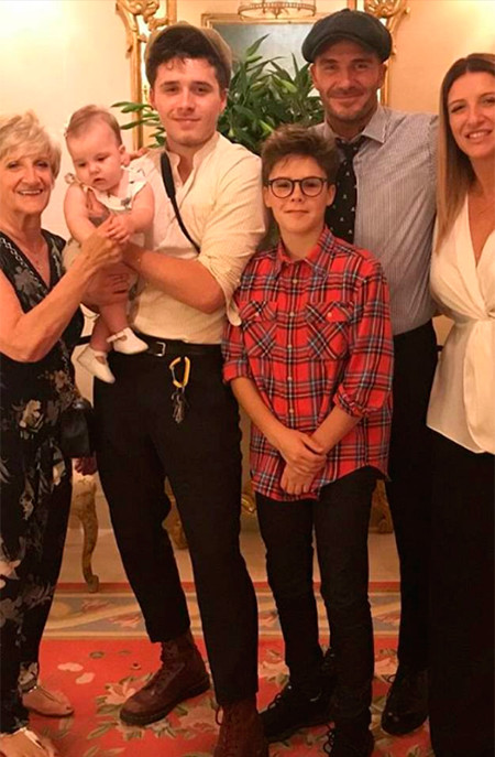Вместе с Дэвидом поздравить свою бабушку пришли двое его сыновей - 19-летний Бруклин и 13-летний Круз. Семья была бы не в полном составе, если бы на праздник Сандры не пришла и младшая сестра Дэвида, Джоанн. Она, конечно же, взяла с собой шестимесячную дочь Пегги.