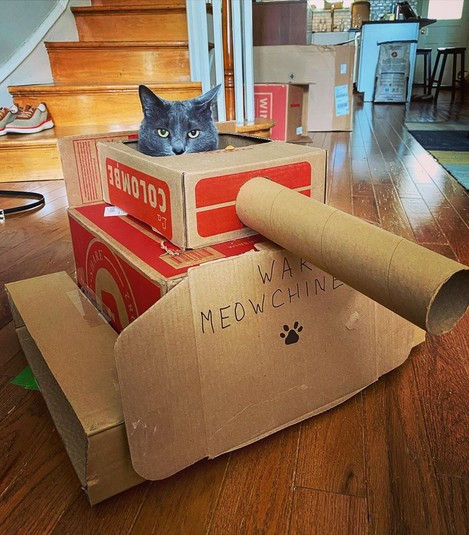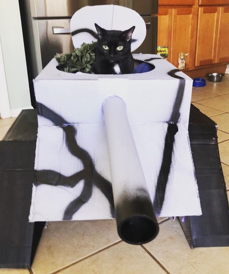 Пока весь мир сидит в изоляции, в сети запустилось огромное количество флешмобов. Можно сказать, что карантин помог многим раскрыть свой творческий потенциал, на что раньше просто не хватало времени. Так, кто-то сам рисует картины, а кто-то их пародирует, кто-то придумывает испытания для своих домашних животных, а кто-то мастерит для них танки. Да-да, картонные танки для котов стали новым увлечением скучающих на карантине. Только посмотрите на этих воинов!