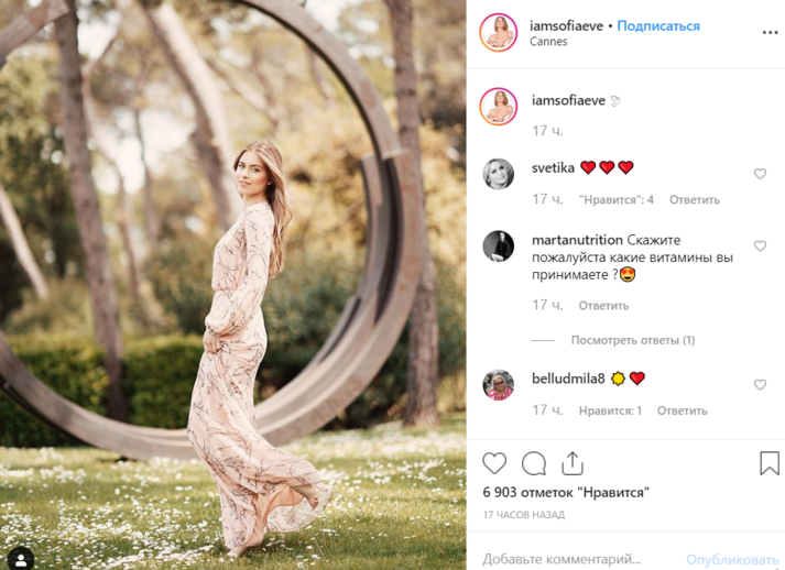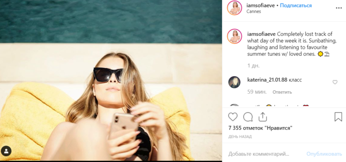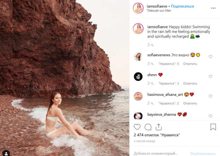 «Купание под дождем эмоционально и духовно меня зарядило», - написала София