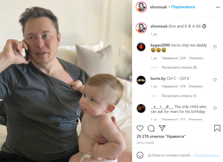 Илон Маск и Граймс впервые опубликовали в соцсетях фото со своим сыном X Æ A-12. Певица опубликовала первое фото с сыном в своем инстаграме. На снимке Граймс в пуховике украинского бренда IENKI IENKI.