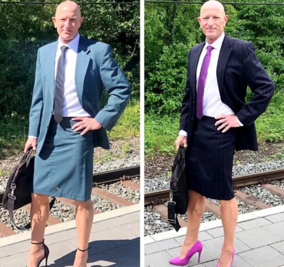 Успешный менеджер по робототехнике, 61-летний Марк Брайан, предпочитает брюкам и туфлям женские юбки и обувь на каблуках. Марк удачно сочетает цвета и фактуры, делая ставку на яркий цвет.