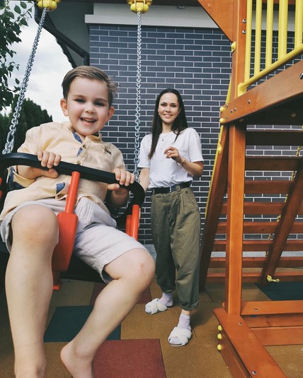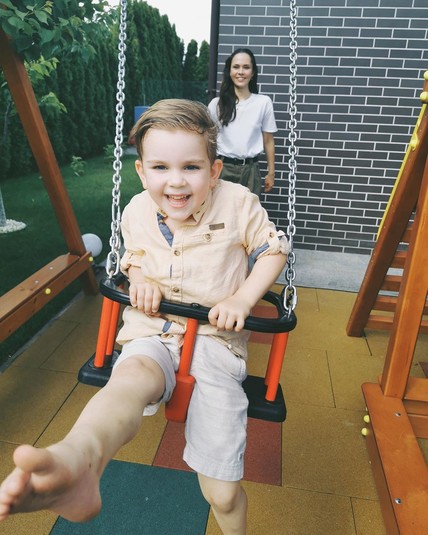 На странице в Instagram знаменитость разместила несколько фото, на которых Даня катается на качелях. Мальчик искренне радовался развлечению и широко улыбался на камеру.