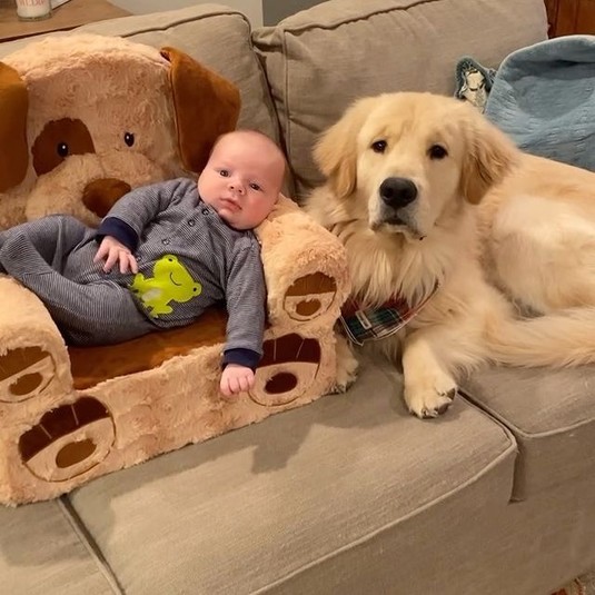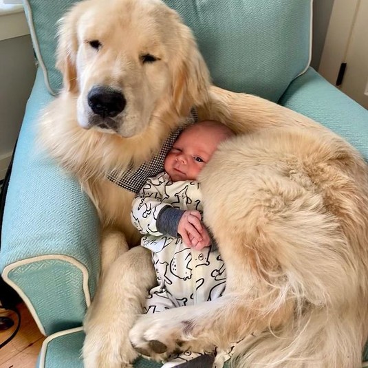 Супруги Паркс из Бостона, которые недавно стали родителями, даже не думали, что их золотистый ретривер по кличке Хинкли будет относиться к новорожденному с удивительной теплотой и заботой. Молодая мама рассказала, что поначалу Хинкли считал малыша Тедди новой игрушкой, с которой он может поиграть. Но вскоре пес стал постоянным спутником ребенка: он ложился спать рядом, обнимал и оберегал его, как самая настоящая няня.