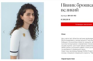 Таку срібну з позолотою прикрасу створили засновниці бренду GUNIA Project влітку минулого року для спеціального проєкту «Півник». На сайті компанії брошка-півник коштує 6200 гривень. У символічній колекції представлені також сережки, підвіси і брошки з півниками різних розмірів.