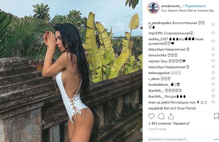 Жена Артема Кравца, нападающего турецкого «Кайсериспор» и сборной Украины, проводит время на острове Бали в Индонезии