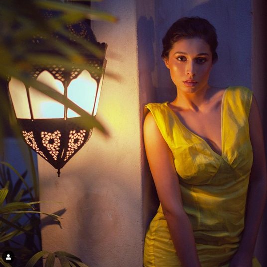 Длинноногая красотка выложила несколько фото в мини и золотых босоножках.