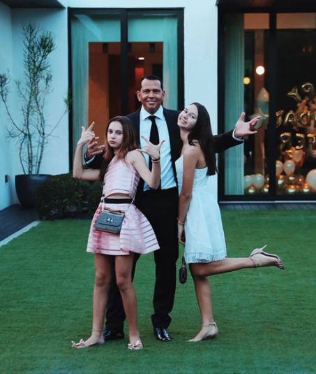 Алекс позировал в строгом черном костюме с галстуком. Его дочери выбрали нарядные платья. Родригес выглядел радостным, как и его дочери. Младшая Элла сделала перед камерой популярный жест – «козу», что в поп-культуре подразумевает символ единства.