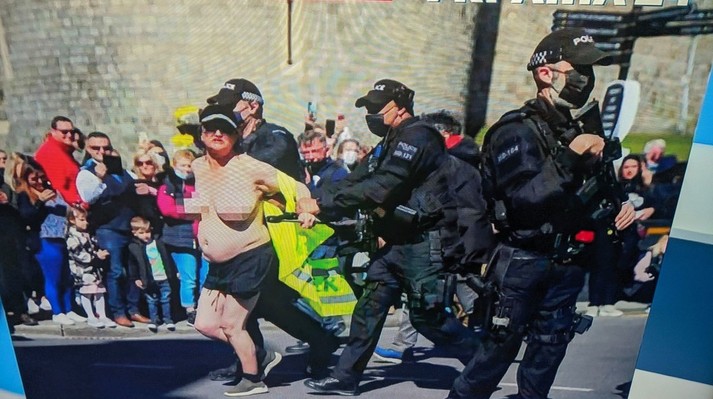 Женщина с голой грудью пыталась сорвать церемонию прощания с принцем Филиппом