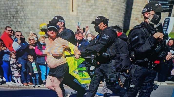На церемонию прощания с герцогом Эдинбургским принцем Филиппом пыталась прорваться полуобнаженная женщина. Женщина, одетая лишь в темные шорты и кепку, кричала «Спасите планету!». Нарушительницу порядка задержала полиция.