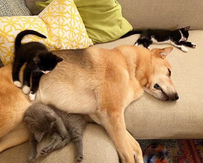 Женщина спасла пса от усыпления. Он стал мамой для ее котят (милые фото)