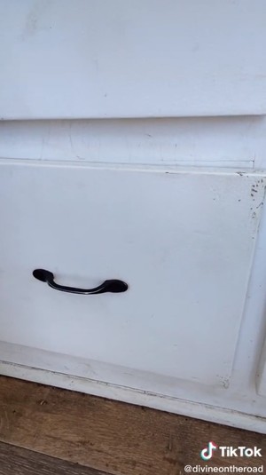 Например, следы от зубов и когтей одной из ее собак. Элла появилась у Сидни когда ей было всего несколько месяцев — тогда девушка уже переехала в дом на колесах. Естественно, на многих вещах остались следы бурного взросления собаки, но Сидни просто не фотографирует такие места вблизи, поэтому люди ничего не замечают.