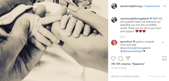 Актер Джонни Галэки, известный по роли Леонарда в сериале «Теория большого взрыва», стал отцом: его возлюбленная Алайна Мейер родила сына. Это первый ребенок для пары. О своем новом статусе Джонни сообщил в Instagram: