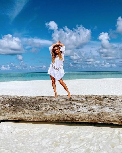 15-летняя актриса устроила себе роскошный отдых на Мальдивах. Остановилась звезда в пятизвездочном отеле Soneva Fushi, расположенном на частном острове атолла Баа. Окруженный Индийским океаном, коралловый остров является биосферным заповедником под защитой ЮНЕСКО.