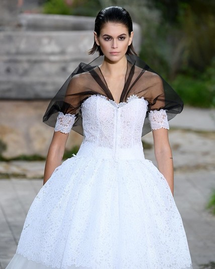 Последний выход 18-летней Кайи Гербер на Неделе моды в Париже вызвал бурную реакцию зрителей. Супермодель появилась на подиуме в роскошном наряде невесты. Казалось, что креативный директор, создавая полупрозрачное белоснежное платье в пол с открытыми плечами, вдохновлялся лучшими свадебными нарядами всех эпох.