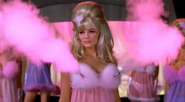Киперман повторила образы этих опасных красоток. Дочь певицы сделала похожую высокую прическу и макияж с яркими стрелками. Она надела откровенный пеньюар с розовым мехом на груди и длинные перчатки в тон. Завершающим штрихом стали изящные аксессуары – серьги, цепочка и стразы вокруг глаз.