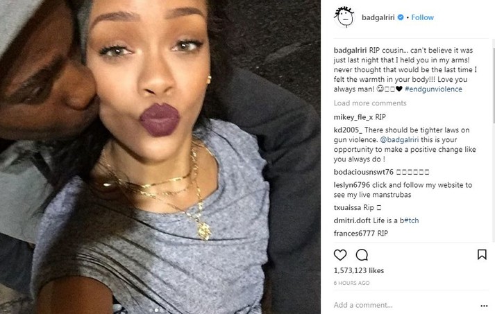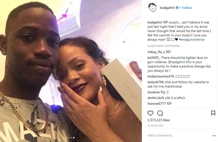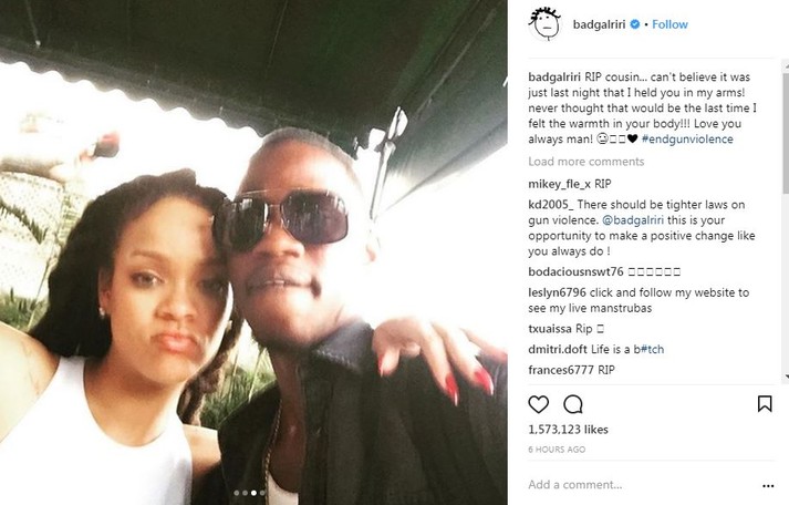 Двоюродный брат Рианны, 21-летний Тэвон Кейсин Элейн, был застрелен вчера вечером на Барбадосе. Проходя по одной из улиц района Сент-Майкл около 19.00 по местному времени, Тэвон столкнулся с мужчиной, личность которого пока пытается выяснить полиция, и получил от него несколько огнестрельных ранений.