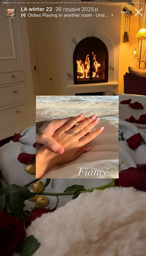 Після оголошення заручин пара вирушила у спільну подорож до В’єтнаму. Роан активно ділиться кадрами з відпочинку та місцевих локацій. Увагу підписників також привернуло нове татуювання на шиї 25-річного Роана – відбиток поцілунку.