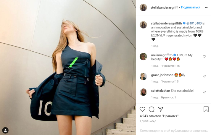 Дочь испанского актера и продюсера Антонио Бандераса Стелла приняла участие в рекламной кампании модного бренда 101p100. На снимки, появившееся на странице марки в Instagram, обратили внимание в Daily Mail.